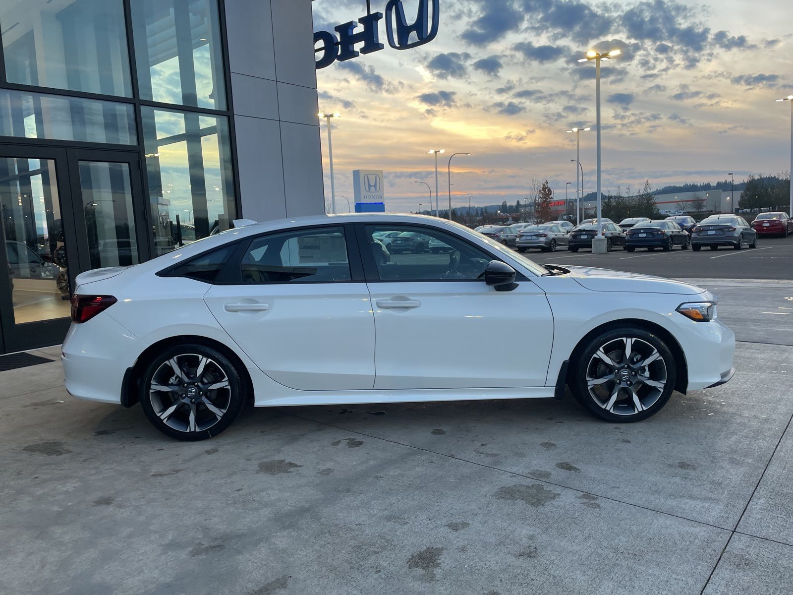 Platinum White Pearl 2026 Honda Civic Hybrid Sport Touring FWD eCVT 2.0L 16V DOHC CLEAN CARFAX/NO ACCIDENTS REPORTED, 125 POINT SAFETY INSPECTION, DEALER SERVICED, SERVICE RECORDS AVAILABLE, FRESH OIL CHANGE, 2.0L 16V DOHC.